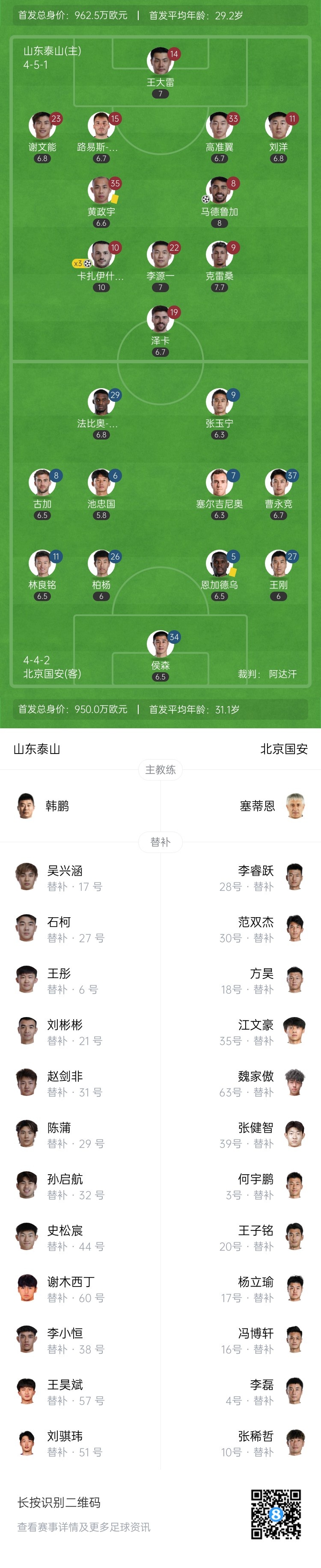 8月31日讯 北京技艺19:35,中超第23轮山东泰山vs北京国安,比赛在济南奥体中心打响!上半场,泽卡破门但克雷桑越位在先,进球无效!池忠国回传造作,卡扎伊什维利包抄破门;随后卡扎伊什维利接到长传单骑闯关,精彩挑射破门!半场范围前,卡扎伊什维利精彩个东说念主秀,左脚兜射完成帽子戏法;随后马德鲁加再下一城!半场范围,山东泰山主场4-0逾越北京国安。