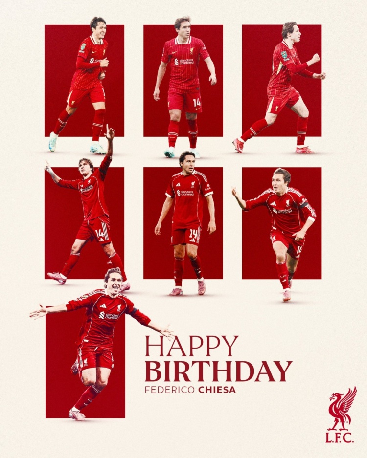 利物浦官方社媒晒海报,祝索博斯洛伊、基耶萨诞辰风光