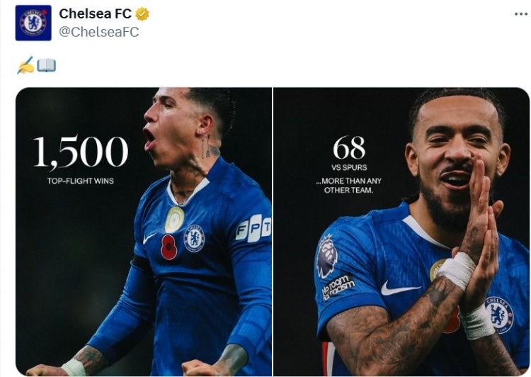 本场比赛亦然切尔西队史收货的第1500场顶级联赛得手,其中对阵热刺68场得手是统统敌手中最多的,蓝军官推也晒出海报归来罢了这一里程碑技艺。