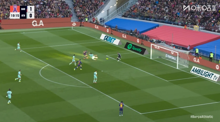 错失良机!费尔明单刀契机射门被扑,奥尔莫补射偏出