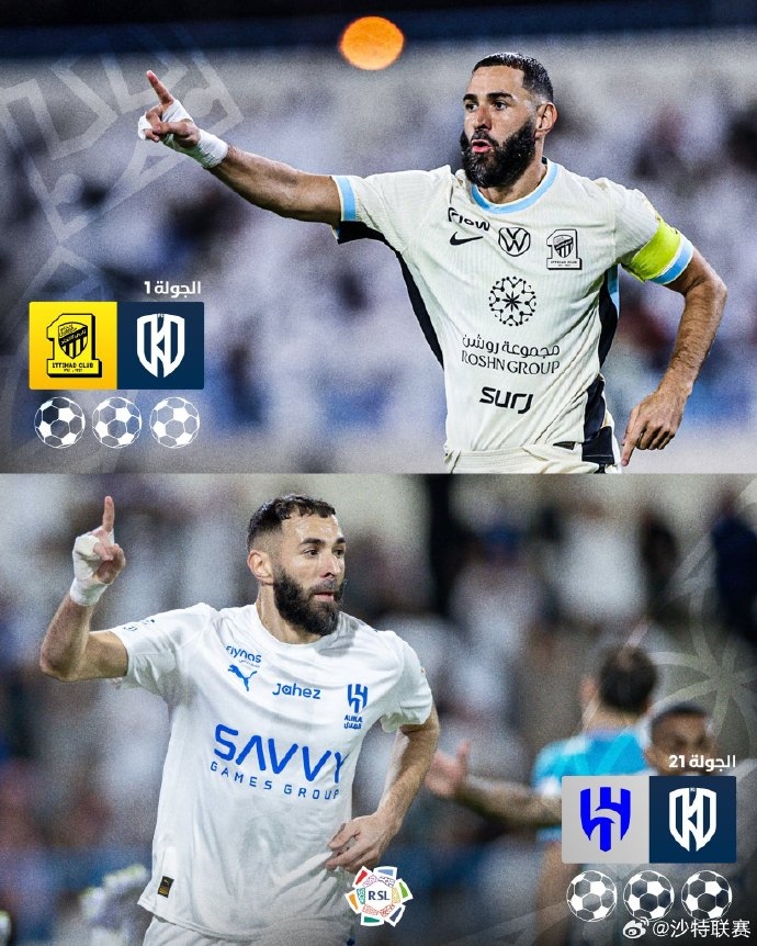 对阵阿科多!本泽马区分代表吉达纠合与利雅得月牙演出帽子戏法