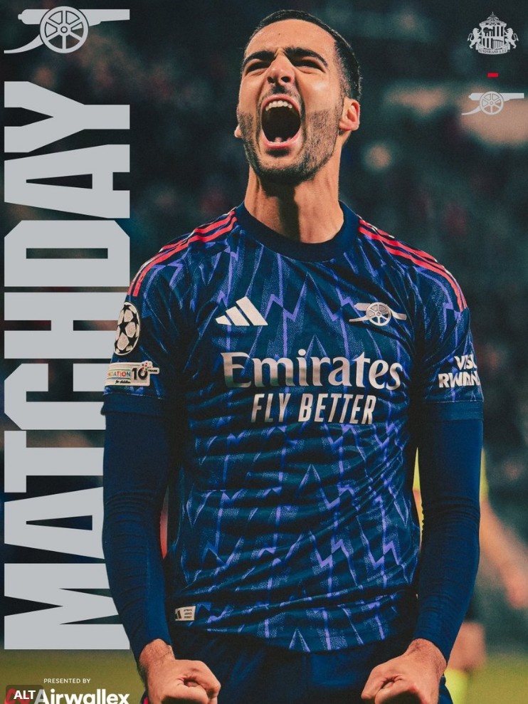 前四对决,阿森纳官推晒本轮英超对桑德兰海报,梅里诺单东谈主出镜