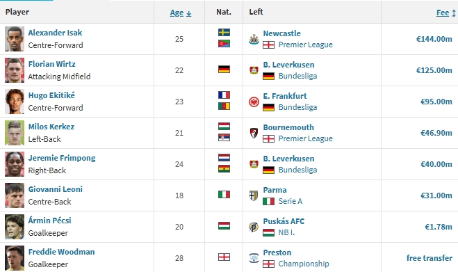 自此,利物浦今夏照旧卖掉了8名球员,共收入约2.195亿欧。在签下伊萨克后,利物浦现在在引援方面共浪费4.8368亿欧。