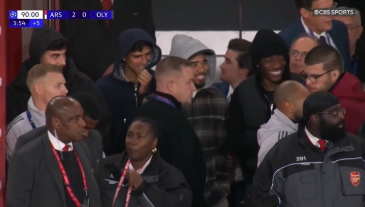 欧冠比赛阿森纳2-0奥林匹亚科斯,养伤4东说念主组现场看球: