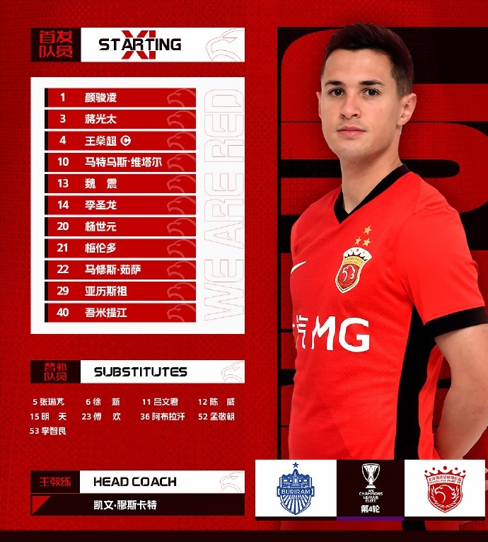 2025/2026亚冠精英联赛第4轮 武里南联vs上海海港 本日首发名单