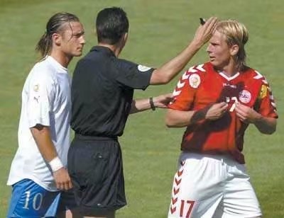 在2004年欧洲杯首轮小组赛,意大利0-0战平丹麦。比赛中托蒂屡次被犯规后失去落拓,对丹麦球员鲍尔森吐涎水。赛后托蒂被追加禁赛3场,而意大利也在随后的小组赛未能出线。托蒂成为了意大利从欧洲杯出局的最大背负东谈主。