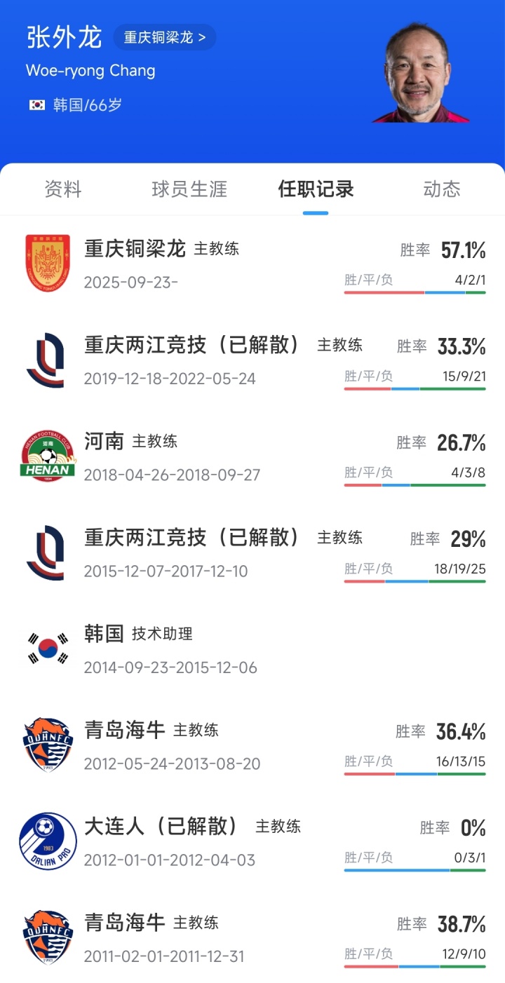 本年9月23日,张外龙出任中甲重庆铜梁龙主帅,带队7场比赛获得4胜2平1负,率队得胜升入下赛季中超。