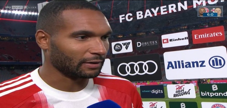 8月23日讯 德甲首轮比赛,拜仁主场6-0打败莱比锡,拜仁后卫若纳坦-塔赛后接收了媒体的采访。