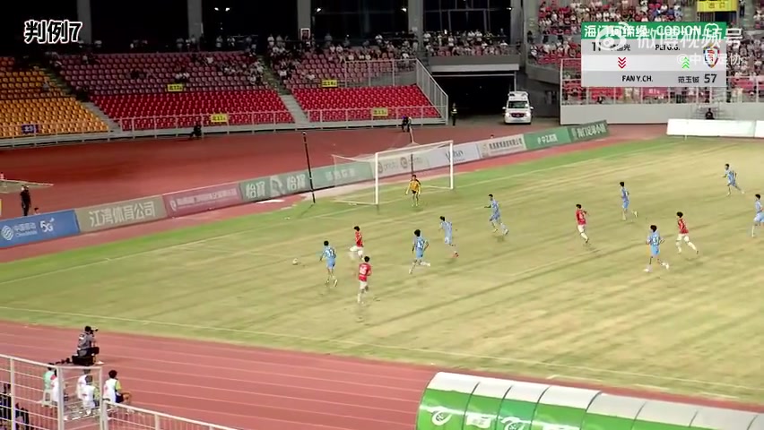 判例七:中乙联赛第23轮,海门珂缔缘VS广西恒宸。比赛第88分钟,海门珂缔缘57号队员接本方传球热切至对方罚球区,广西恒宸21号队员铲球,随后海门珂缔缘57号倒地,评判员未判罚犯规。