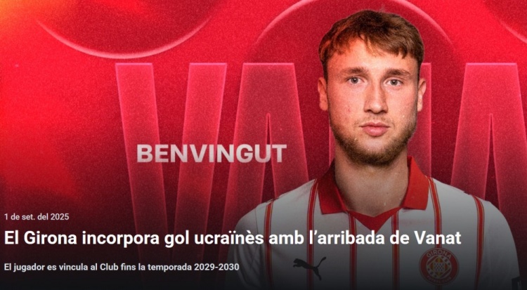 9月1日讯 赫罗纳俱乐部官方通知,与基辅迪纳摩就23岁的乌克兰时尚瓦纳特已毕契约,两边将签约5年。