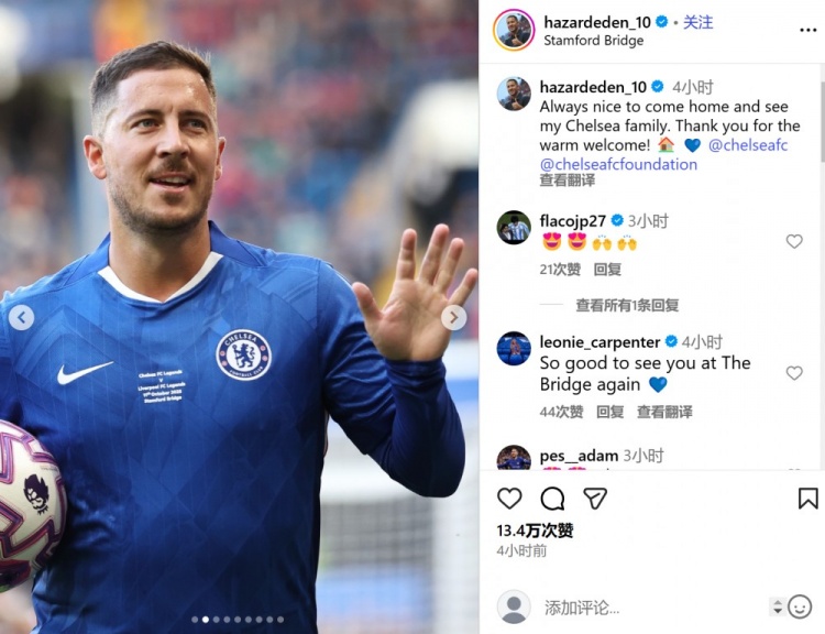 阿扎尔写谈:回家并见到切尔西专家庭的成员老是很应允,感谢你们的狠恶接待!