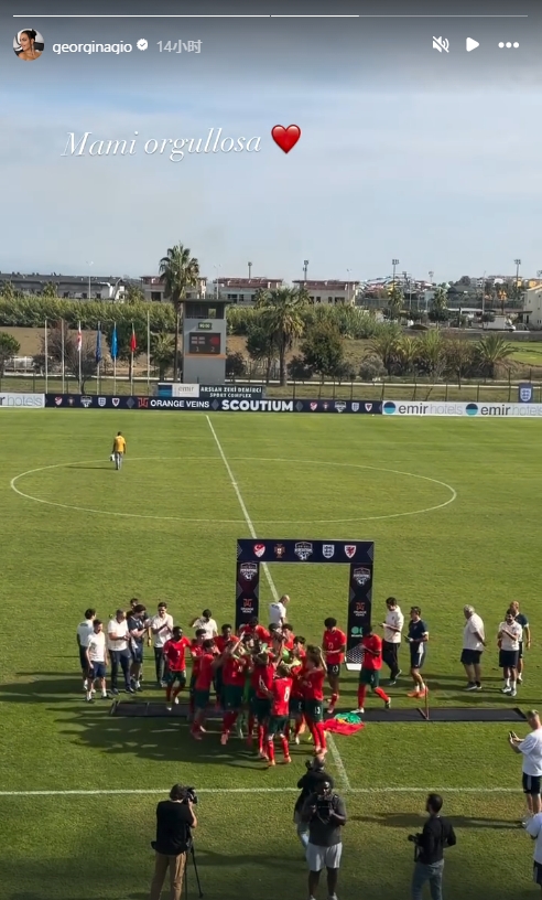 乔治娜在个东说念主社媒晒出迷你罗和队友庆祝的视频,同期写说念:孤高的姆妈。